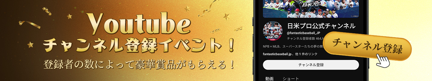 ファンタスティックベースボール:日米プロ公式YouTubeチャンネルをチャンネル登録して報酬を獲得しましょう!